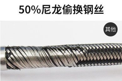 實驗證明:金屬軟管采用201不銹鋼,具有不走絲,燒不著等優點,將不銹鋼和尼龍混在一起,品質經不起火煉。 |