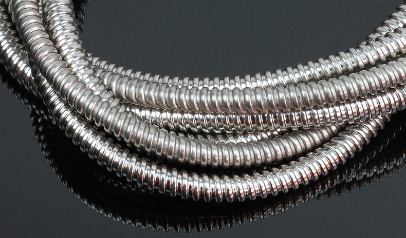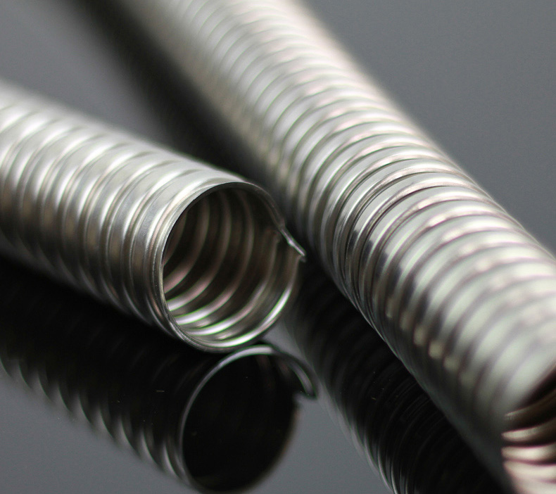 不銹鋼護(hù)線管具有重量輕、口徑一致性好,柔軟性、重復(fù)彎曲性、橈性好;耐腐蝕、耐高溫;