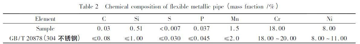 表2 金屬軟管化學成分檢測結果( 質量分數/%)