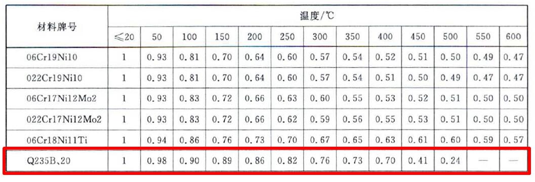 波紋管、網套和接頭常用材料的溫度修正系數見下表: